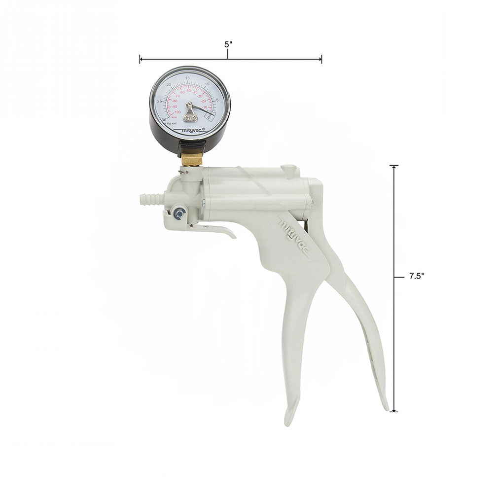 The pump includes the precision-made repairable vacuum/pressure pump, a transfer and storage lid, two 2-foot lengths of 1/4-inch I.D. Tubing, develops and hold up to 25-inch (62cm) of Mercury (Hg) vacuum, rubber cup adapter, vacuum gauge scaled in inches and centimeters of Mercury (Hg), automotive adapter package reservoir jar, and a mini user's manual.