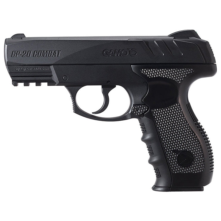 Have fun with this 20-round clip fed CO2 powered pistol. The GAMO GP-20 Combat is a great entry-level CO2 pistol that shoots up to 400 fps. Lightweight and easy to use.