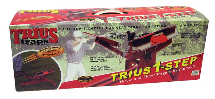 One easy step cocks & releases clay target. One person can throw and shoot! The newest member of the TRIUS trap shooting line, the One Step has become a very popular seller. Arm is set and targets are placed on arm without tension. Step on pedal to put tension on the arm and release clay targets in one motion. Aluminum arm plus oil impregnated bushings deliver years of trouble-free shooting. Throw regulation singles plus piggyback doubles. High Angle Target Clip Included! Large knobs for adjusting tension and vertical angle make the TRIUS One Step trap fully adjustable without tools.