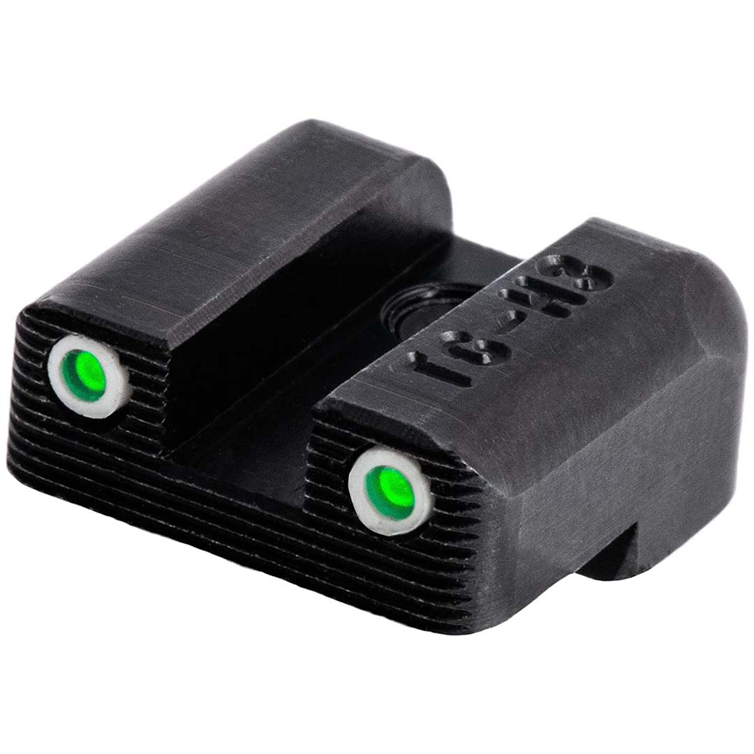 from standard white dot sights during the daylight, to glowing green dots in the dark. Tritium does not